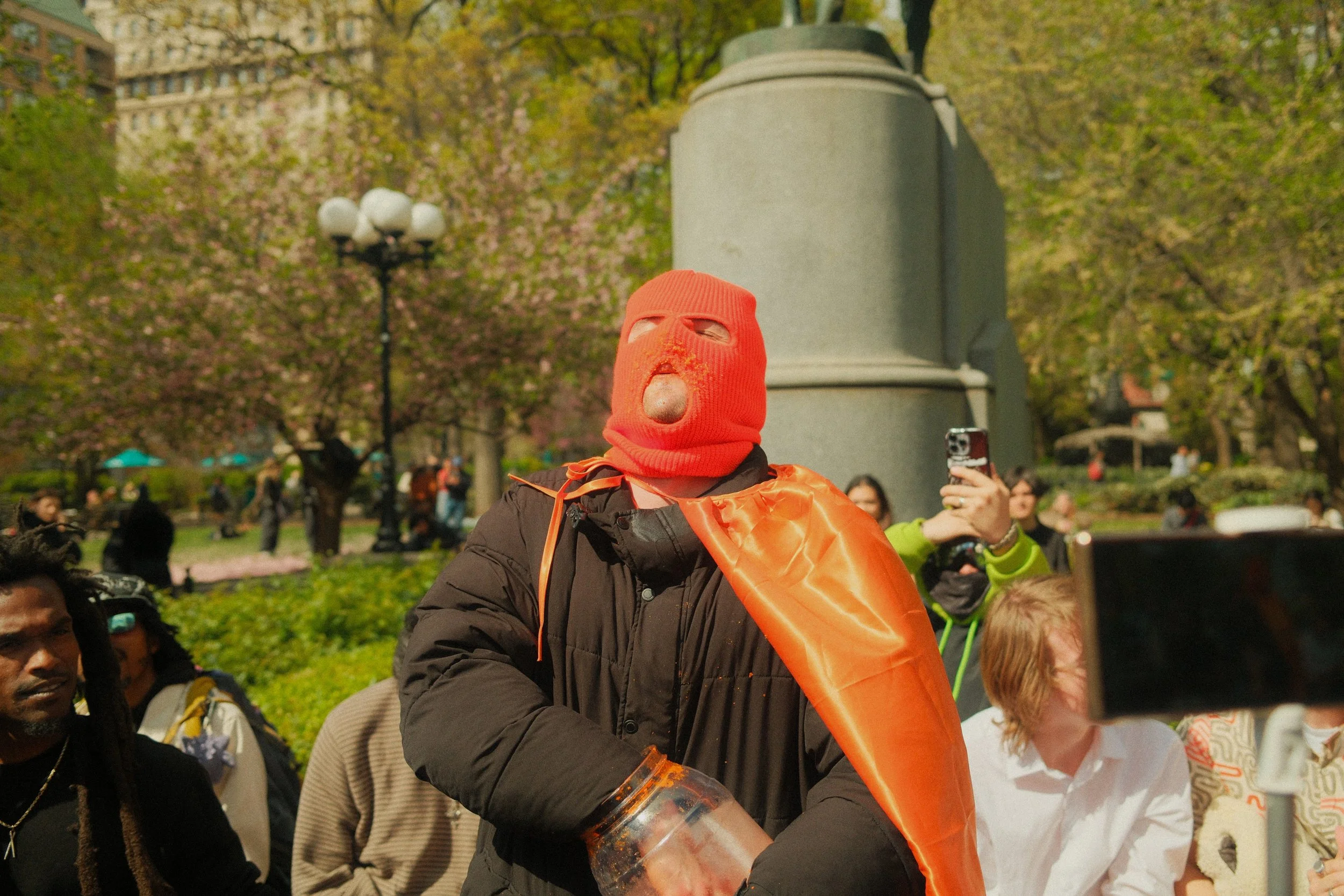 On April 27, 2024 Cheeseball Man shook NYC with the promise of eating a whole jar of cheeseballs. Witness some glorious shots of his cheesy goodness.